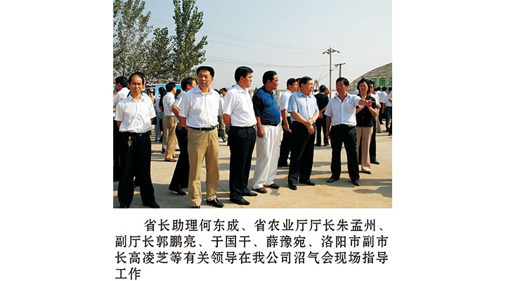 河南省省長助理何東成、省農業廳廳長朱孟州、副廳長郭鵬亮、于國干、薛豫宛、洛陽市副市長高凌芝等有關領導在我公司沼氣會現場指導工作