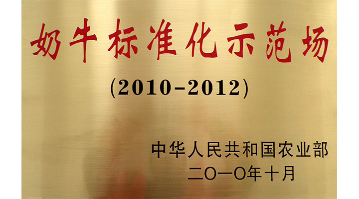 中華人民共和國農業(yè)部授予“生生牧場”為“奶牛標準化示范場”