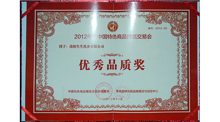 2012年度中國特色商品博覽交易會榮獲“*品質獎”