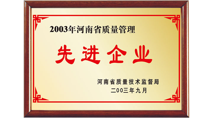 河南省質量技術監(jiān)督局授予企業(yè)為2003年河南省質量管理“先進企業(yè)”