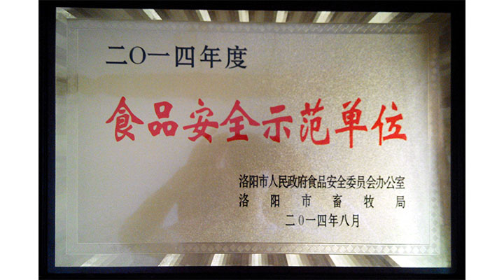 洛陽市人民政府、洛陽市畜牧局授予企業(yè)為2014年度“食品安全示范單位”